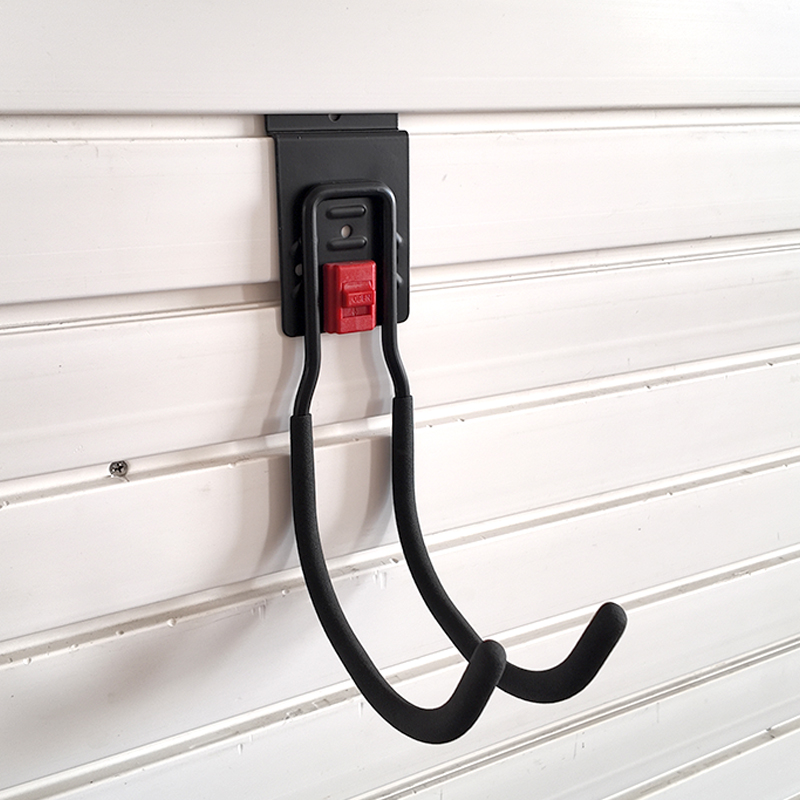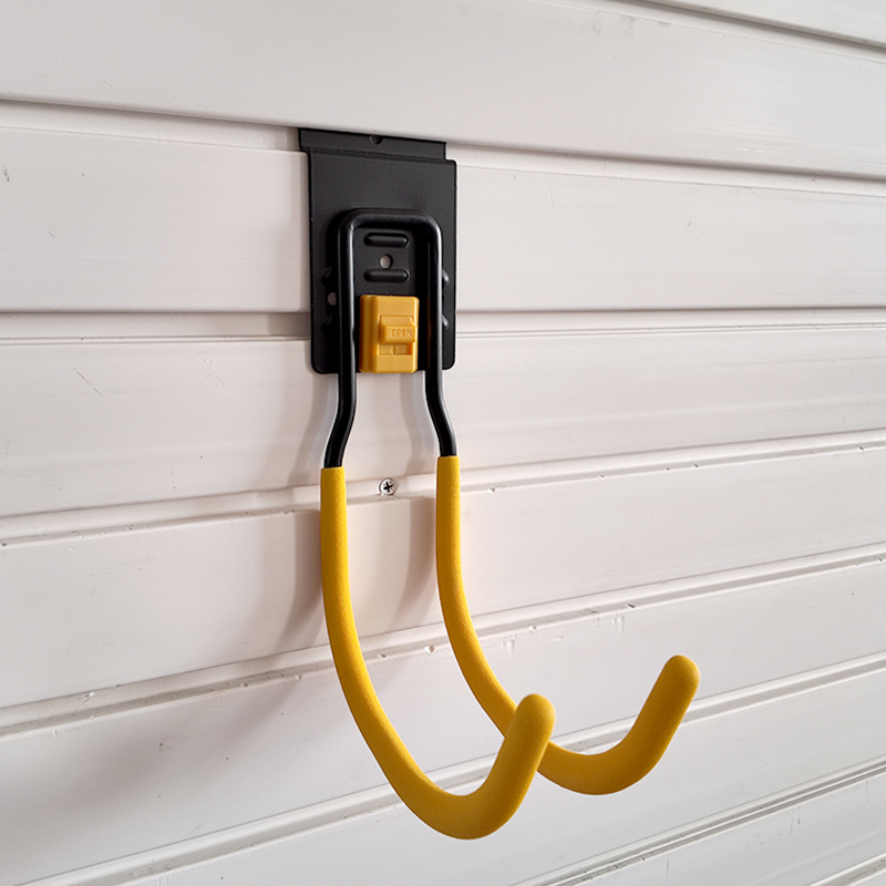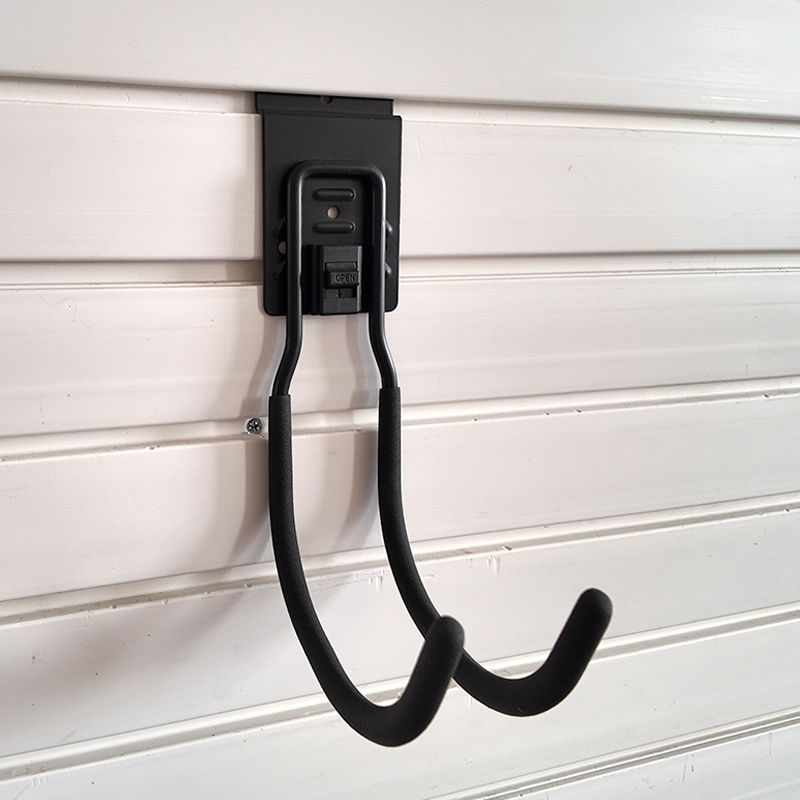 1.This is a Slatwall large round hook with a lock buckle, suitable for storing heavy-duty gardening tools in garages
